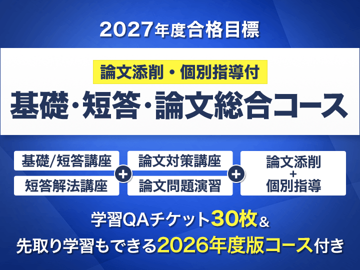 | 合格コース | 総合コース 最も人気! | 総合コース +論文添削・個別指導 | ||