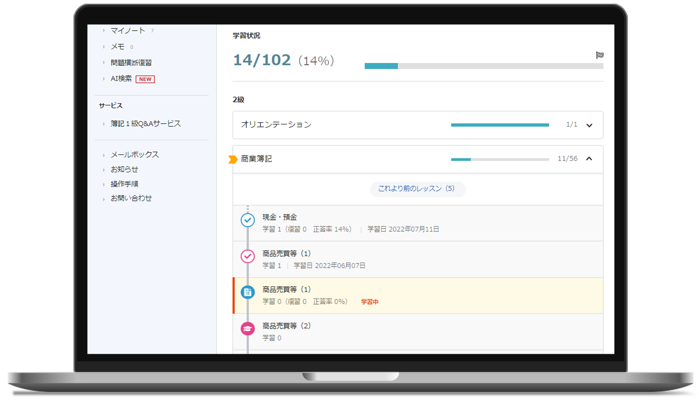 最適な学習順で表示される講義と問題を 進めていけば大丈夫 |