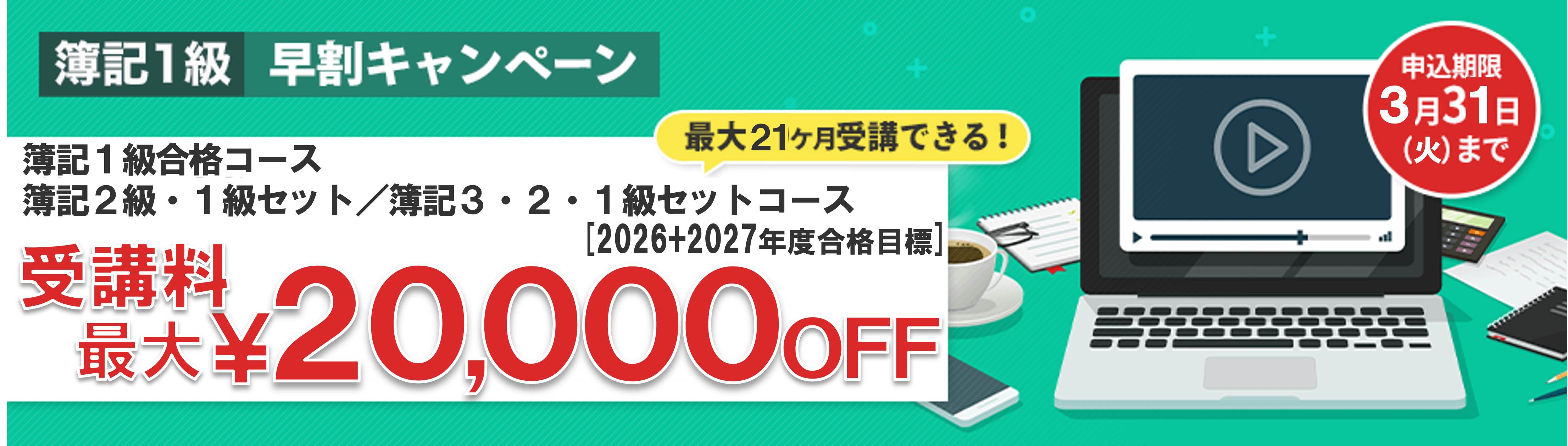 | 簿記3級・2級セットコース[2026年4月~2027年3月合格目標] |