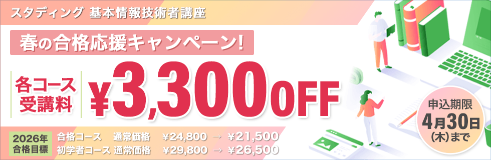 2026年の基本情報技術者試験合格に向けて学習をスタートする方を応援すべく、お得なキャンペーンを実施しています。
