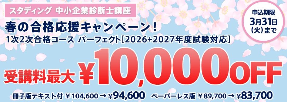 ぜひ、この機会をご利用頂き、中小企業診断士資格に合格して頂ければ幸いです。