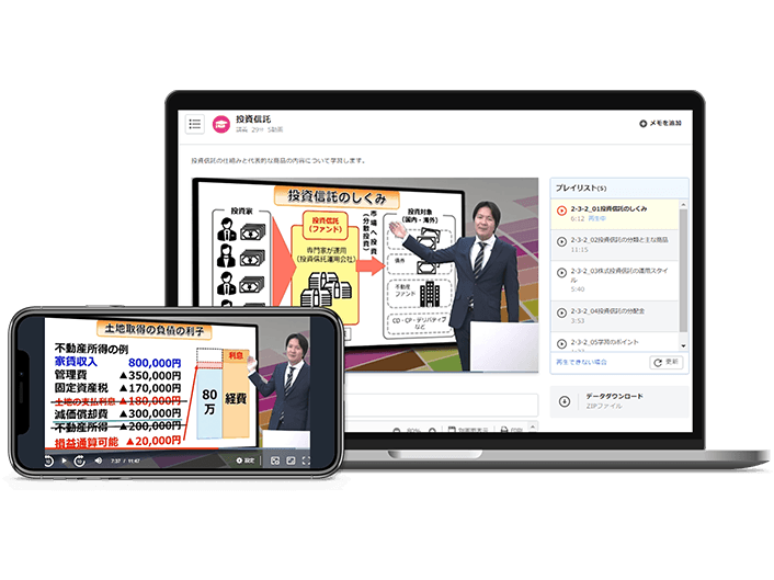 ![]() | 日本FP協会、きんざいのどちらの試験にも対応した講座ですか? |