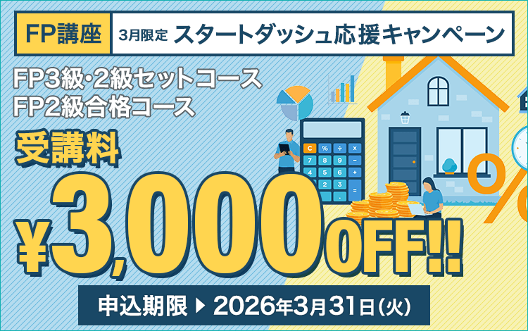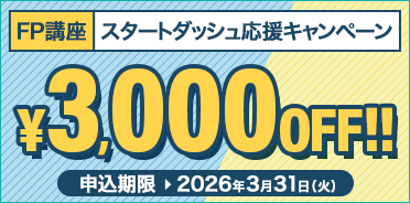 ![]() | FP 3月31日(火)まで FP講座 スタートダッシュ応援キャンペーン3/31(火)まで対象コースが3,000円OFF!オンラインに特化した講座と問題でFP試験合格を目指して学習を始める方を応援!AI問題復習機能やAI実力スコアなどのスタディング独自のAIアシスト機能で、あなたの資格学習を効率よくサポートします。 |