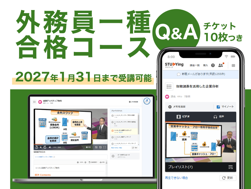 二種・一種の両方の範囲を学習される場合は、二種・一種外務員セットコース[2026年試験合格目標]をご利用ください。