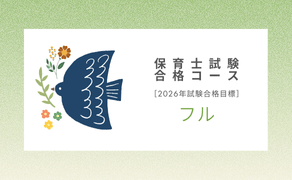過去に「保育士試験合格コース」をご受講され、2026年に保育士試験に再チャレンジされる方向けの更新版コースです。 講義・問題・WEBテキストも、すべてスマホで学習できます。 フル:一次試験・二次試験対策・二次試験添削・対面指導 レギュラー:一次試験・二次試験対策・二次試験添削 ミニマム:一次試験対策 商品ページ・購入する | |||||