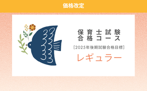 ![]() | 保育士 2025年12月7日(日)まで 保育士講座 2025年後期試験対応商品価格改定保育士試験合格コースの2025年後期試験版が価格改定!受講料最大11,000円OFF! |