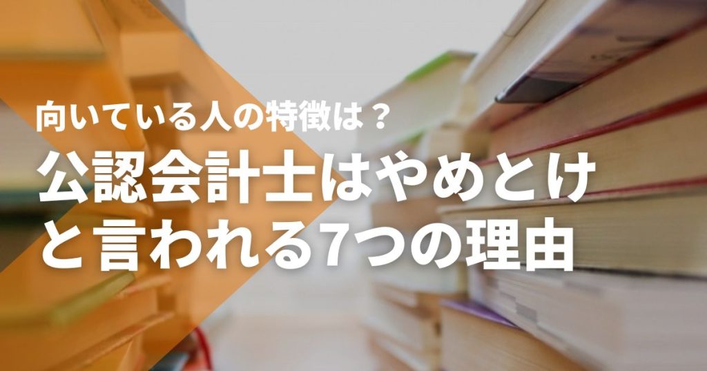 公認会計士を目指している人の中には、「公認会計士はやめとけ」と言われて不安に感じている人もいるのではないでしょうか?