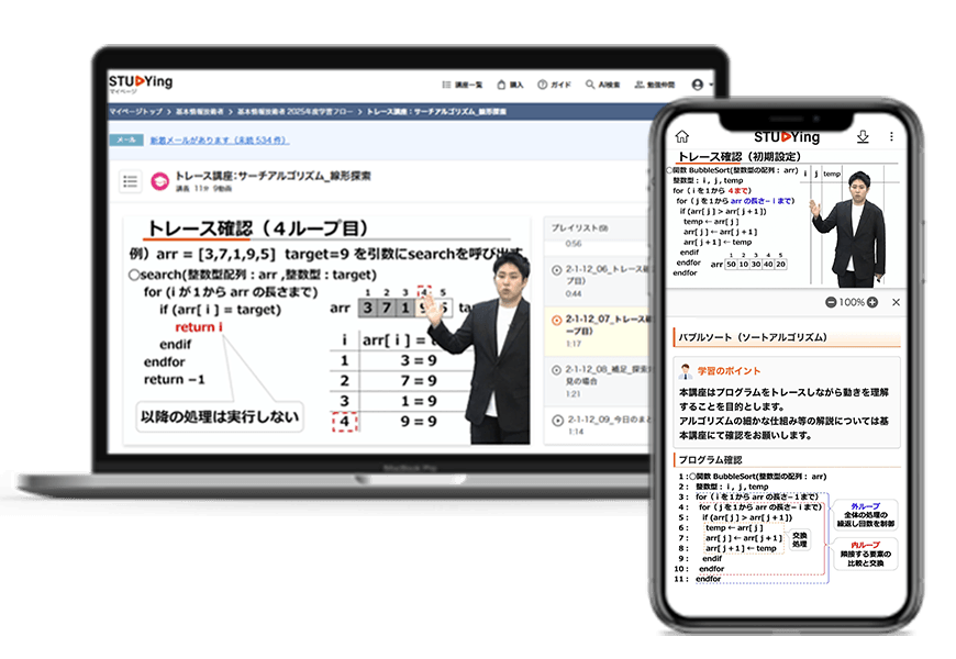並べ替えや探索など定番アルゴリズムを繰り返し追うと、それぞれの動きの特徴が自然と身につきます。本番では『この流れは見たことある』と気づけて有利になります。