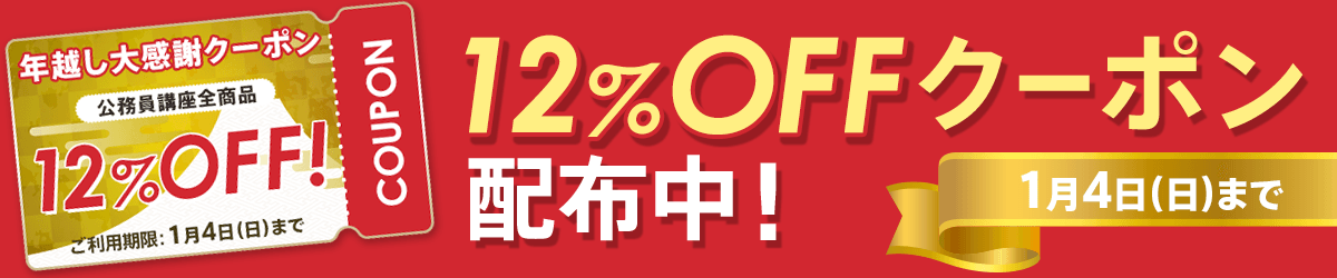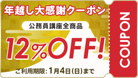 今だけ公務員講座で使える「年越し大感謝クーポン」をプレゼントしております!