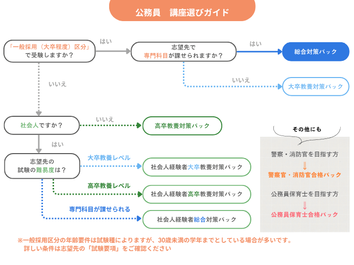 | 大学生以外の方もご購入いただけます。本コースは地方上級や市役所などの大卒程度試験の対策コースになりますので、当該試験を受験される予定の方であれば、ご活用いただける内容となっています。なお、受験要件については各自治体の受験要項をご確認ください。 |