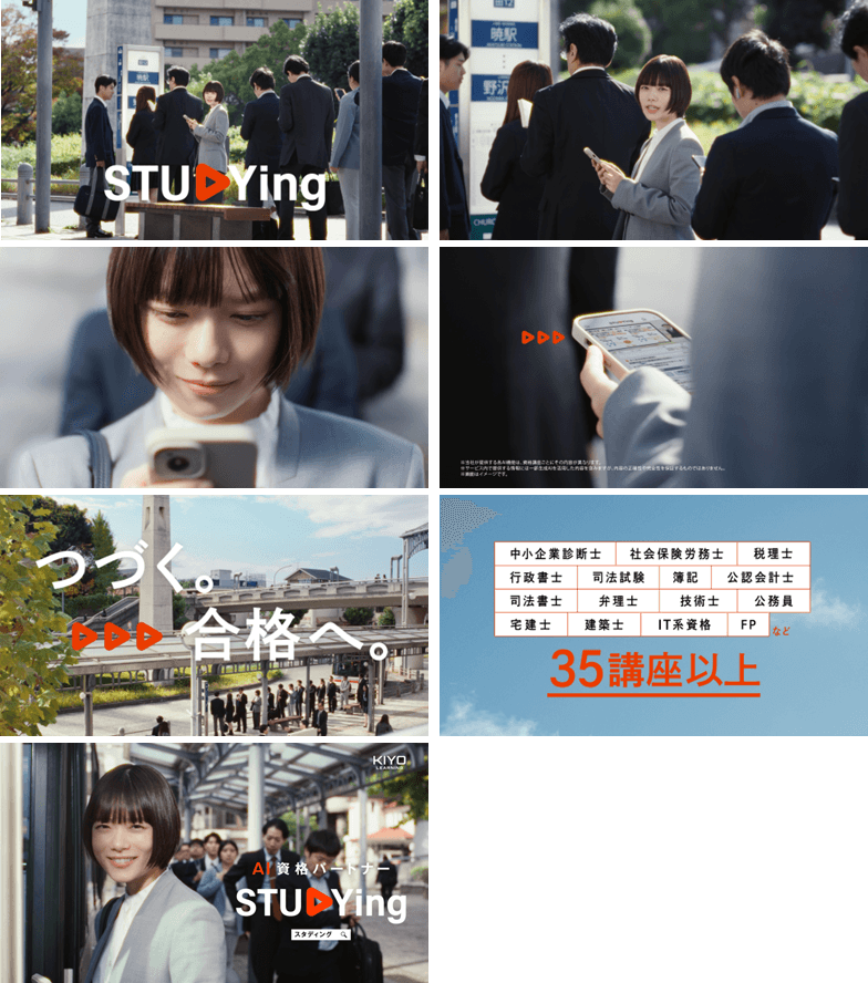本CMでは俳優の杉咲花さんを起用し、資格取得という長い道のりに寄り添い、学びが“つづく”ことの大切さを描きました。スタディングは今回のCMを通じて、AIを活用した学習支援を強化し、新たに『AI資格パートナー』として、合格までの継続的な学びを支えていきます。