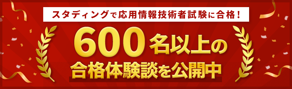 | スタディング 応用情報技術者講座では、受講中の不明点を講師に質問できる「学習Q&Aサービス」をご用意しています。学習Q&Aサービスは、「チケット制」になっており、1チケットで1問の質問をすることができます。 各コースには10枚の学習Q&Aチケットが含まれます。 チケットをさらに追加購入することで、質問の回数をさらに増やすことができます。 学習Q&Aサービスの詳細、チケットの購入はこちら |