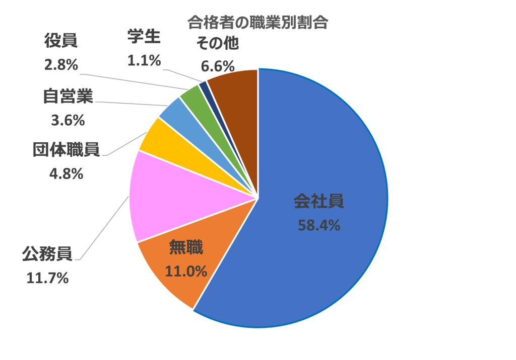 令和7年度(2025年度)の合格者の職業別の割合を見ると、公務員は11.7%で、会社員に次いで2番目の多さでした。