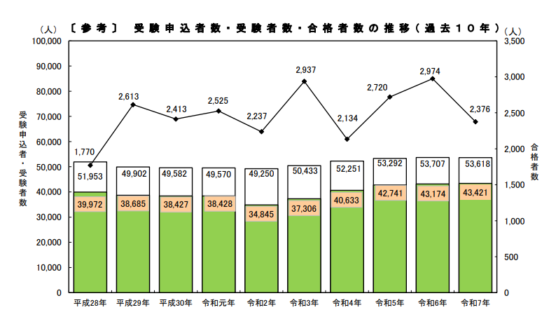 | 年度 | 受験者数 | 合格者数 | 合格率 |