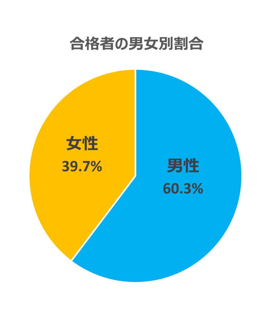 令和7年度(2025年度)合格者の男女別割合は以下のとおりです。社労士試験は女性の合格者が比較的多い点も特徴です。