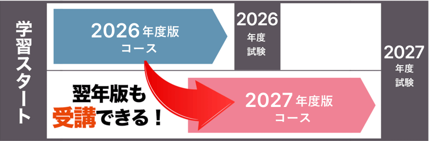 ※2027年度版コースは、今後リリースされ次第(2026年7月下旬リリース開始予定)、本コースをお申込みの皆様のマイページに追加いたします。
