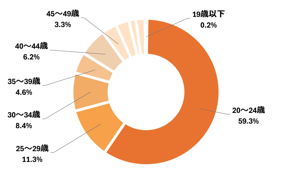 予備試験合格者の年齢分布を見ると、25歳以上の合格者が全体の約4割を占めています。