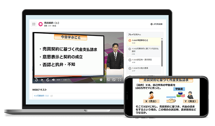 効率的に学習するには、使用する学習ツール選びが重要です。スタディング 司法試験・予備試験講座では、これまでの受験者が苦労したことを解消し、継続して学習しやすい学習システムを搭載しています。