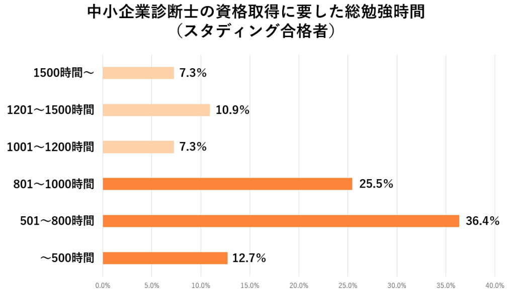 中には500時間以下の勉強時間で合格した方も1割程度いて、一般的に言われる1,000時間という目安の半分以下で合格を実現しています。