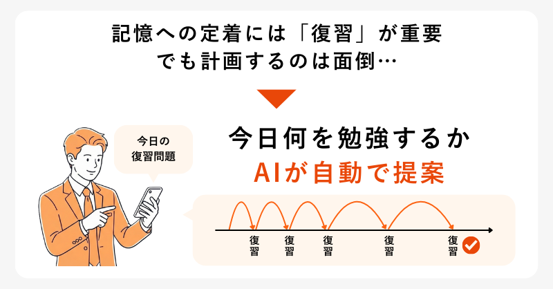 資格学習においては、一度の学習で全てを覚えるのではなく、繰り返し復習したほうが記憶に定着します。
