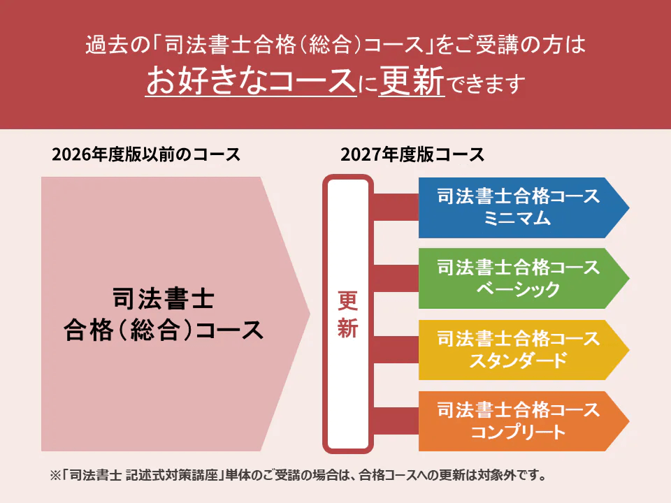 ※「司法書士 合格コース[2027年度合格目標」の「ミニマム」「ベーシック」「スタンダード」「コンプリート」には付属しません。オプションとしてご購入いただけます。