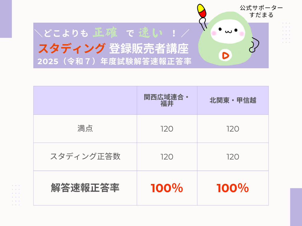 令和7年度試験の公式解答が発表されたブロックでは、正答率100%を維持しています!(2025.09.02時点)