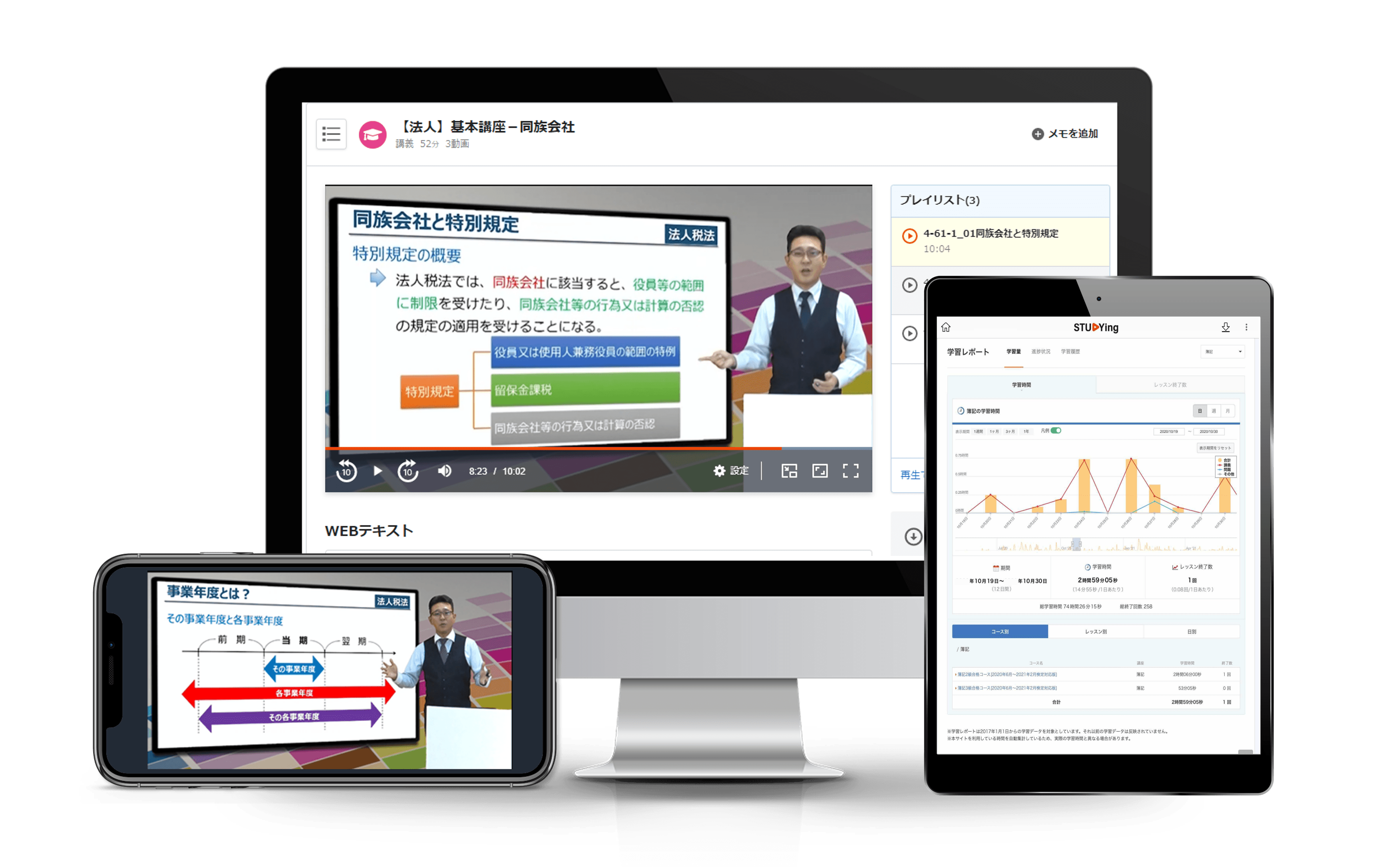 法人税法合格コース教材コース内には、以下の講座・機能が含まれています。